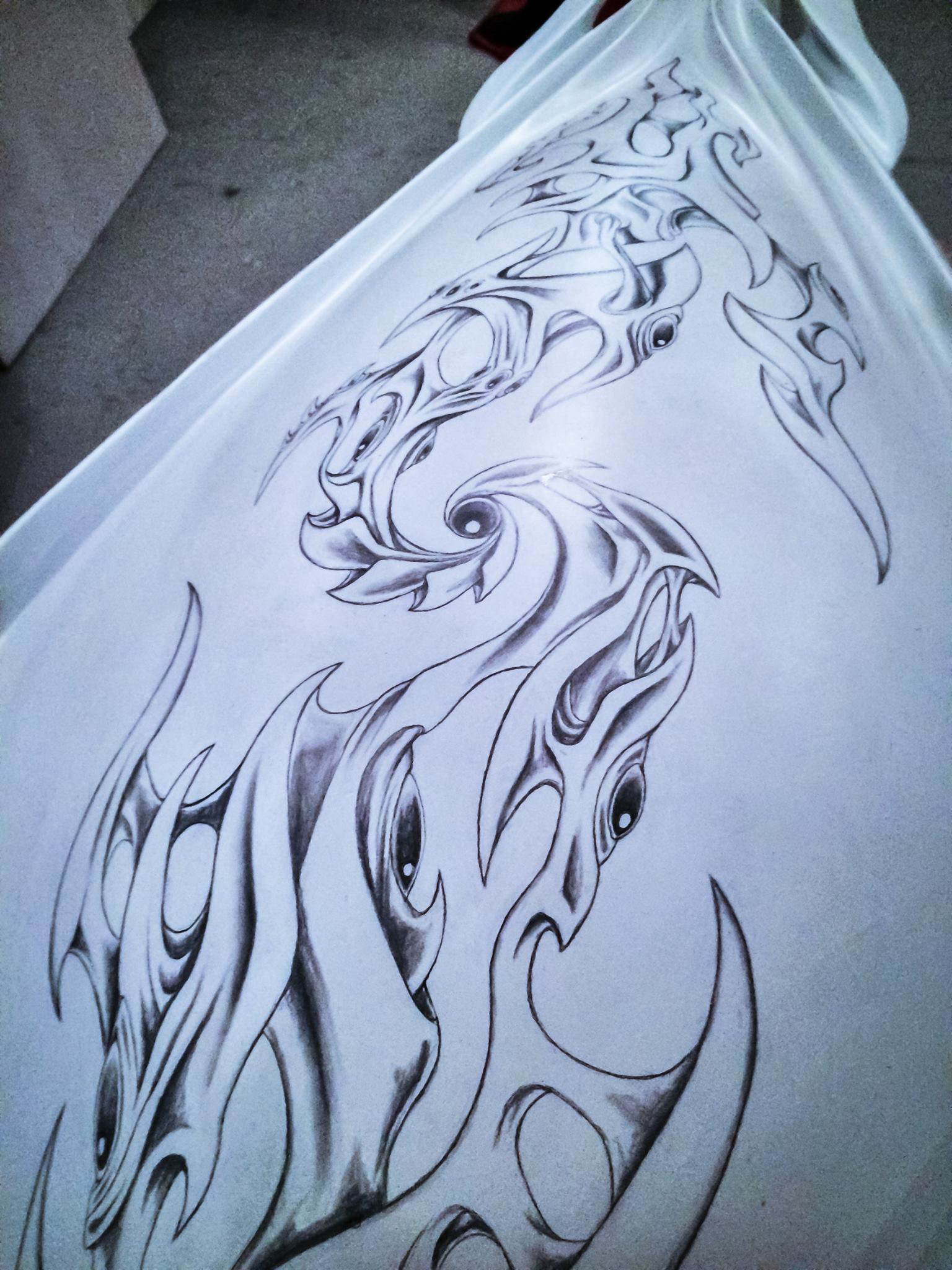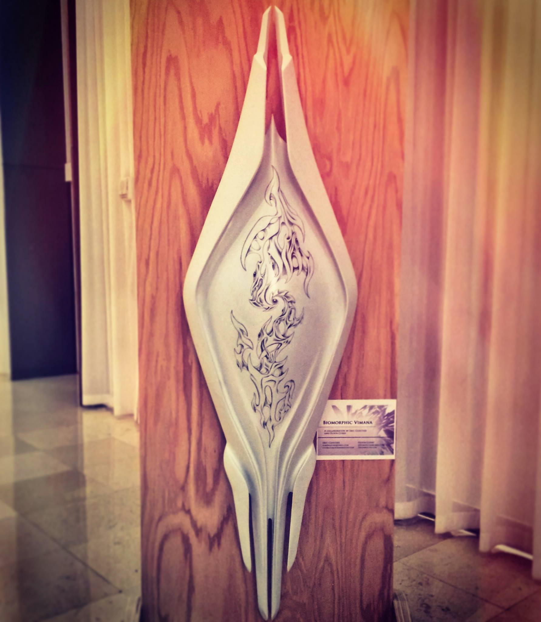 Biomorphic Vimana was a collaboration with my friend Eric Cloutier of Surface Systems 1. This first time a sketch of mine made it into Art Basel.